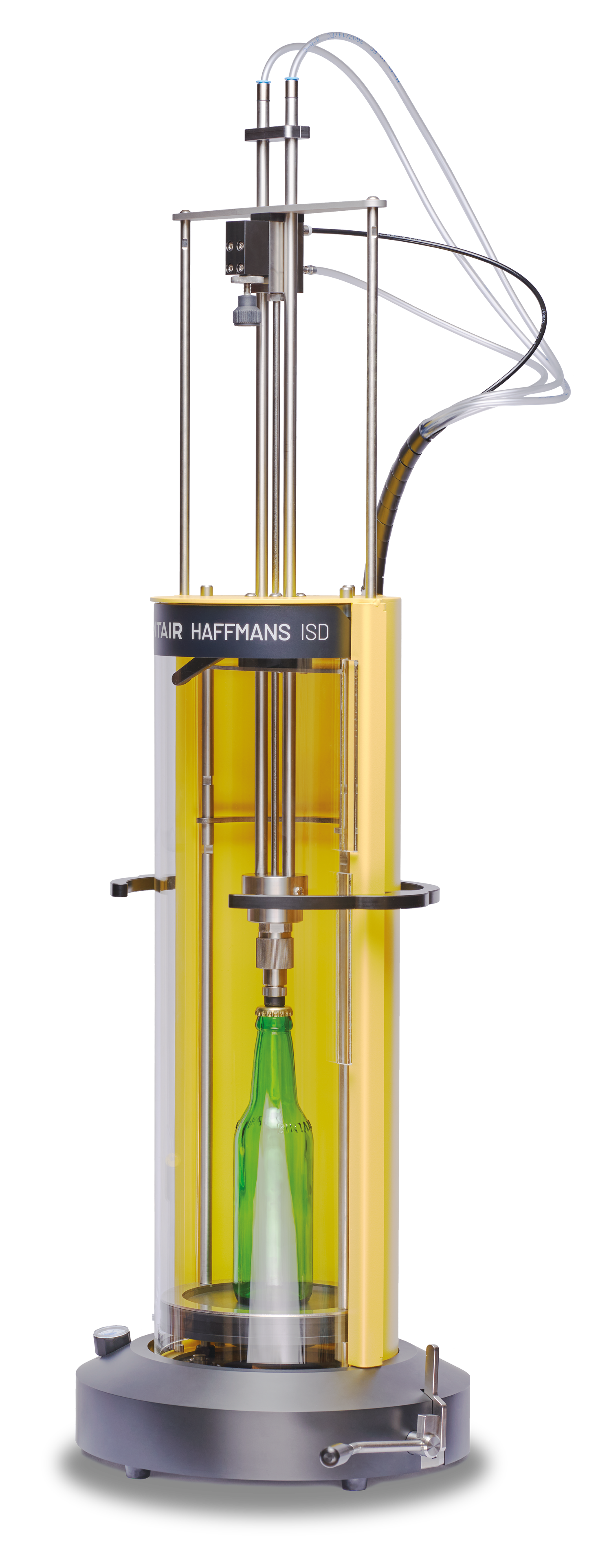 Nach dem Befüllen des Probenglases mit Schaum, der mit dem Haffmans Inpack Sampling Device in Kombination mit dem Inpack Flasher Head hergestellt wurde, wird das Glas in die Messkammer gestellt. Die Zerfallzeit des Schaums wird automatisch gemessen. Nach dem Messvorgang werden die Ergebnisse angezeigt und an einen PC übertragen.