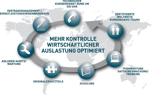 Vor Ort sammelt das Serviceteam wertvolle Information zu den spezifischen Betriebsbedingungen. Mit der Leistungsdatenüberwachung können wir langfristige Informationen sammeln, die gewährleisten, dass die Troubleshooting- und Serviceaktivitäten bei Bedarf sehr effizient sein werden.