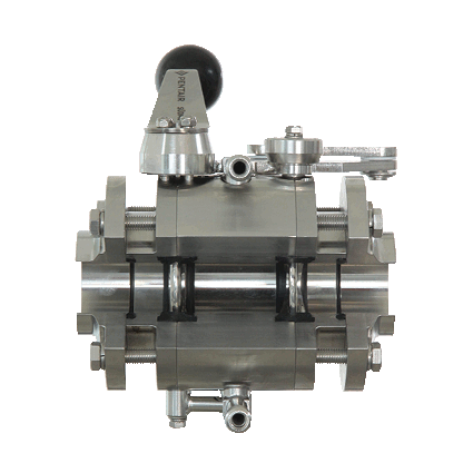 By integrating two butterfly discs and independent vent/drain valves into a common housing, the Pentair Südmo Leakage Butterfly Valve completely isolates the self draining leakage chamber with a single valve housing and actuator.